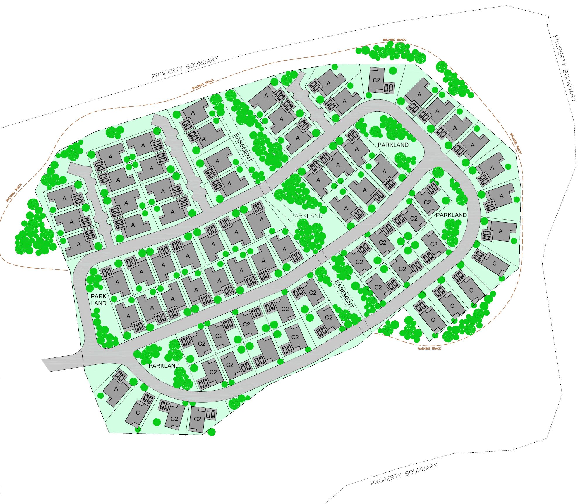 Given the undulating terrain, lots were configured to each have an aspect to the rolling hills or seaside, with minimal site excavation or retaining wall works – allowing each unit to have their own view and character.